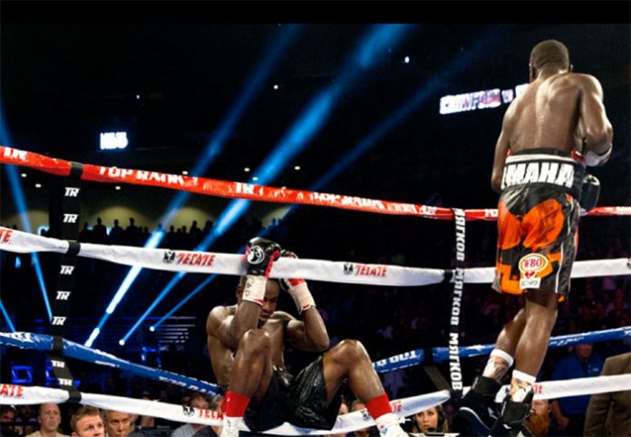 Terrence «Bud» Crawford noqueó el sábado a Dierry Jean en el décimo asalto para retener su título de los superligeros por la Organización Mundial de Boxeo (OMB).