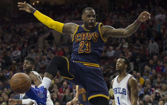 El astro de los Cavs lució frente a 20.000 aficionados en el Wells Fargo Center con poderosas clavadas. Sumó nueve asistencias y siete rebotes para la 13ra victoria de Cleveland en los últimos 15 juegos.