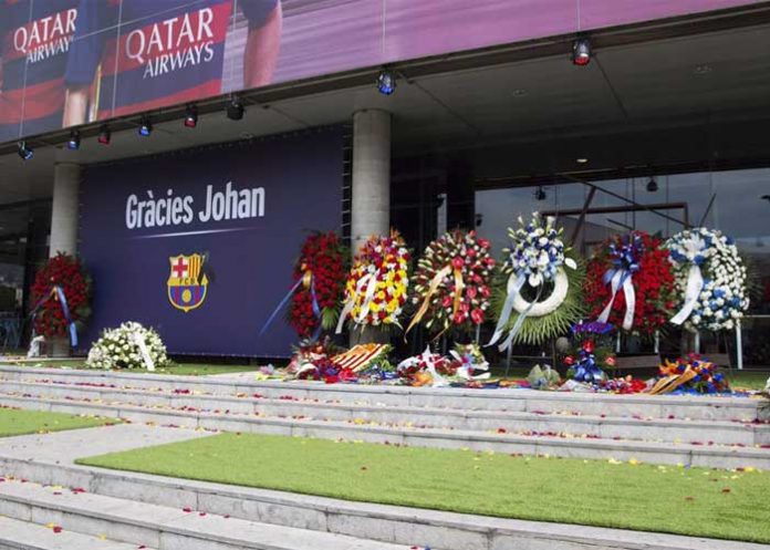 El presidente del Barsa, Josep Bartomeu, inauguró el memorial el sábado por la mañana, y dijo que todos los mensajes serán enviados a la familia de Cruyff.