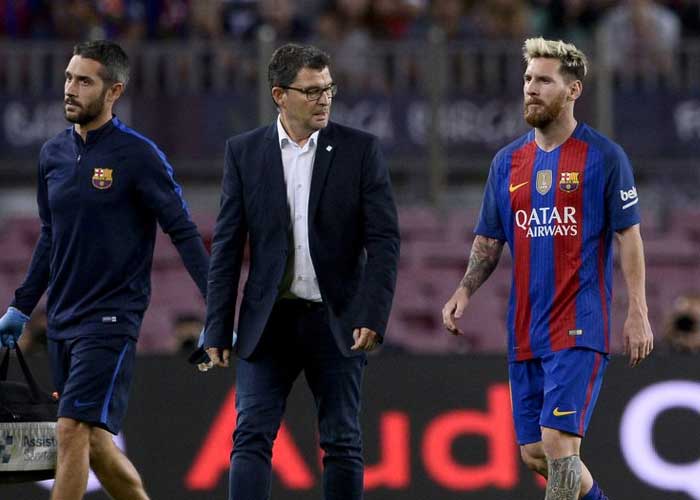 El astro argentino Lionel Messi se retiró por lesión el miércoles del partido entre el Barcelona y el Atlético de Madrid por la quinta fecha de la liga española.