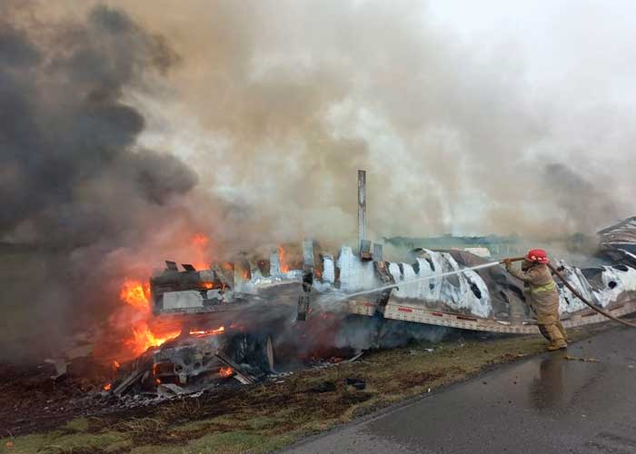 Así mismo, confirmó que en el punto del incidente no se encontró el tracto camión que llevaba la caja del tráiler.