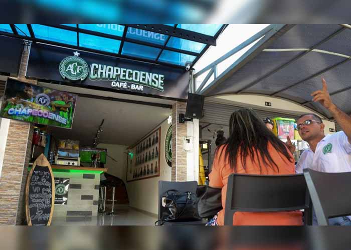 El Chapecoense Cafe-Bar, sin embargo, es distinto, ya que fue abierto para homenajear a los jugadores del equipo brasileño de fútbol que se accidentaron en noviembre en Medellín. Esa noche, el humilde conjunto del sur de Brasil volaba hacia esa ciudad colombiana para disputar la final de la Copa Sudamericana contra el Atlético Nacional, un sueño que acabó en pesadilla cuando el avión se precipitó a tierra y murieron 72 personas.