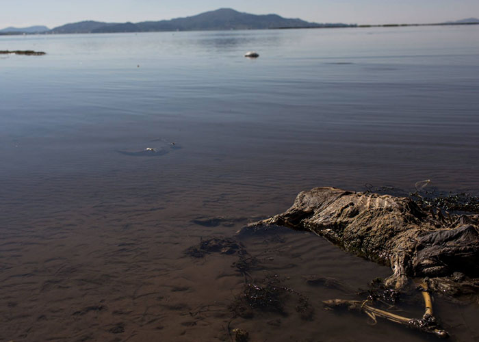 Al interior de un bote que recorre el lago, Maruja Inquilla divisa el cadáver de una gallareta andina que flota entre el agua verdosa y llena de basura. La coge de una pata y dice: "ni el lago ni los ríos eran así antes; era agua cristalina, podías apreciar los peces, era vivir como en un paraíso".