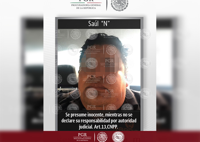 Saúl "N", es "identificado como uno de los líderes de un grupo delictivo vinculado con delincuencia organizada y trata de personas con fines de explotación sexual", precisó el comunicado de la PGR (fiscalía federal).