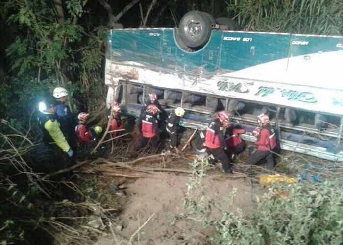 El autobús cayó desde una altura de diez metros en el sector Villacís, ubicado en la vía Panamericana Norte, publicó en su portal web Europapress.es