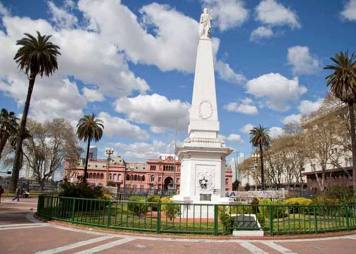 La Pirámide de Mayo, de 19 metros de altura, fue construida en 1811 para celebrar el primer aniversario de la Revolución de Mayo, cuando se instauró en el país el primer gobierno patrio.