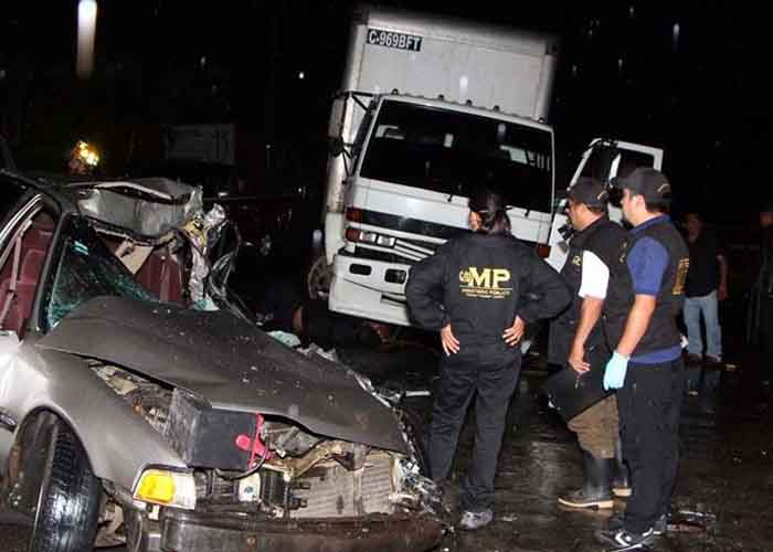 En la denominada cuesta de Las Cañas en la ruta a la colonial Antigua Guatemala colisionaron 8 vehículos, aunque no se reportan víctimas.