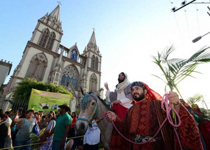 El Domingo de Ramos conmemora, según la iglesia católica, la entrada triunfante de Jesús a Jerusalén sobre un burro, lugar donde se le aclama como el mesías, el rey, el salvador.