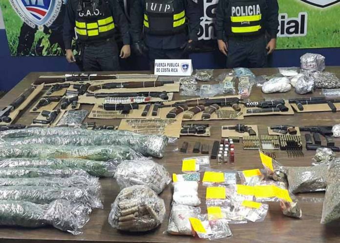 Además de las armas de fuego, el viceministro de Seguridad Pública y director general de la Fuerza Pública, Juan José Andrade, precisó que también se incautó una gran cantidad de estupefacientes como crack, marihuana y cocaína.