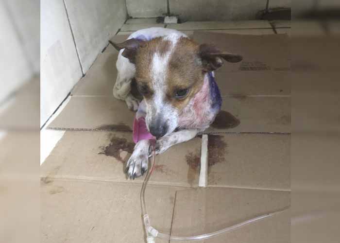 La denuncia fue hecha este miércoles a través de la red social Facebook, en el perfil de Adopciones de Perritos en Costa Rica. En las imágenes, se puede ver la gravedad de las heridas en el cuello, al parecer, provocadas con un machete.
