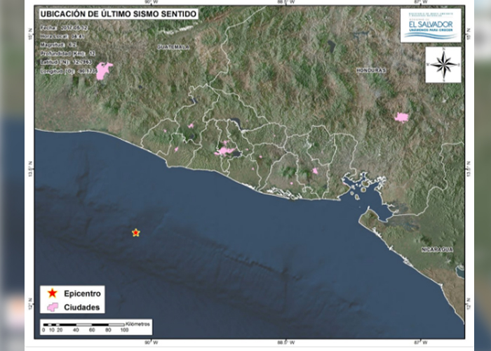 El temblor se registró a las 04H41 locales (10H41 GMT) con epicentro en el Océano Pacífico, a 90 km al suroeste de la costa del departamento de Sonsonante, a 12 kilómetros de profundidad, señaló el ministerio de Medio Ambiente.