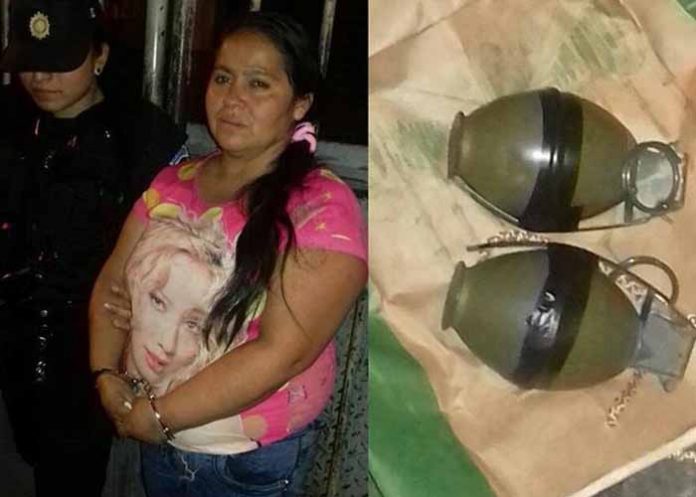 Vilma Aracely Vargas Quiñonez, 37, fue capturada en la 5 avenida y 2 calle zona 9 de Tegucigalpa por llevar dos granadas de fragmentación en una mochila infantil.