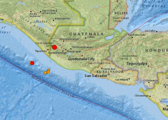 El epicentro se encuentra a unos pocos kilómetros de las costas mexicanas del estado de Chiapas y unos 8 kilómetros al suroeste de la municipalidad guatemalteca de Tajumulco. El movimiento telúrico se produjo a unos 111 kilómetros de profundidad.