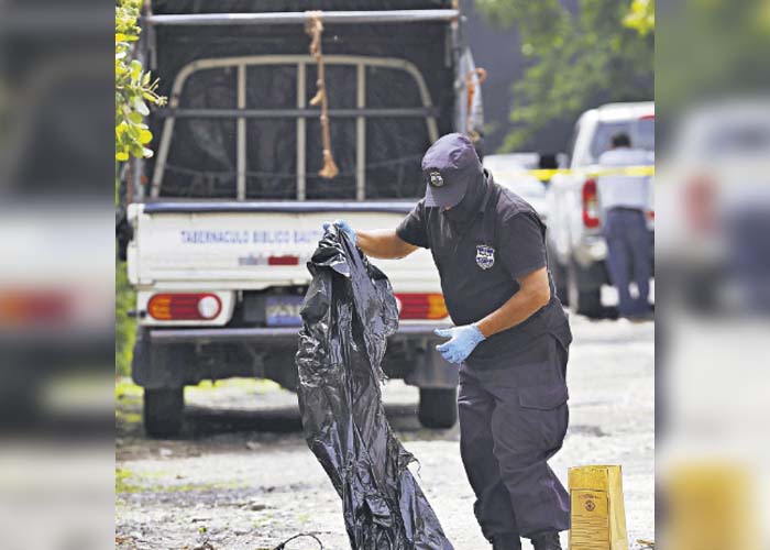 Los cadáveres de un hombre y una mujer fueron encontrados en distintos puntos de San Salvador en circunstancias similares. Ambos estaban en bolsas negras, envueltos en sábanas, atados de pies y manos, y con un calcetín en la boca.
