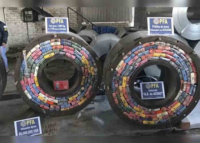 La mayoría de la cocaína, 1.500 kilos, fue hallada en ocho bobinas de acero preparadas con cables especiales y campos magnéticos para que no pudieran ser detectados por escáners en un taller de la localidad bonaerense de Bahía Blanca, 570 kilómetros al sur de la capital argentina.