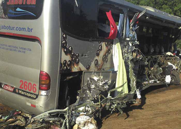 Los hechos ocurrieron en la carretera BR-301, a la altura del término municipal de Guarapari, cuando una furgoneta que transportaba granito invadió, por causas desconocidas, el sentido contrario y chocó contra un autobús, según divulgó la Policía de Carreteras Federal.