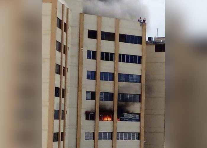 Fotografías del siniestro publicadas en cuentas de redes sociales muestran a varias personas subiendo por las ventanas hasta la azotea de uno de los tres edificios que componen el complejo.