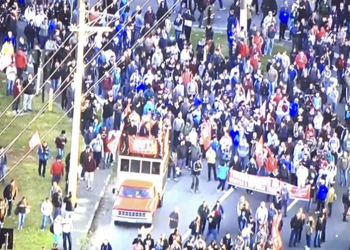 La Policía de carreteras estimó que en la protesta hay al menos 300 personas, en su mayoría trabajadores de las montadoras de Volkswagen, Ford, Scania y Mercedes-Benz.