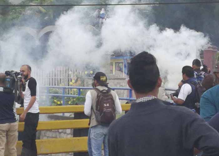 Un oficial de la Policía Nacional indicó a periodistas que a los manifestantes que comenzaban a lanzar piedras y otros objetos a las fuerzas del orden se les advirtió que despejaran las vías porque sino serían desalojados, lo que al final ocurrió.