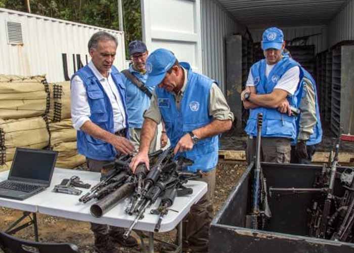 Naciones Unidas comenzó el lunes a retirar contenedores con más de 7.000 armas de las zonas de desmovilización donde fueron entregadas por ex combatientes de las FARC, que han comenzado una nueva vida como civiles de conformidad con el acuerdo de paz.