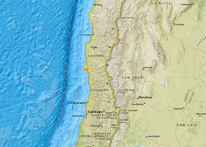 La entidad indicó que el epicentro del terremoto se ha ubicado a 19 kilómetros al oeste de Canela Baja, en la región de Coquimbo, a una profundidad de 33 kilómetros.