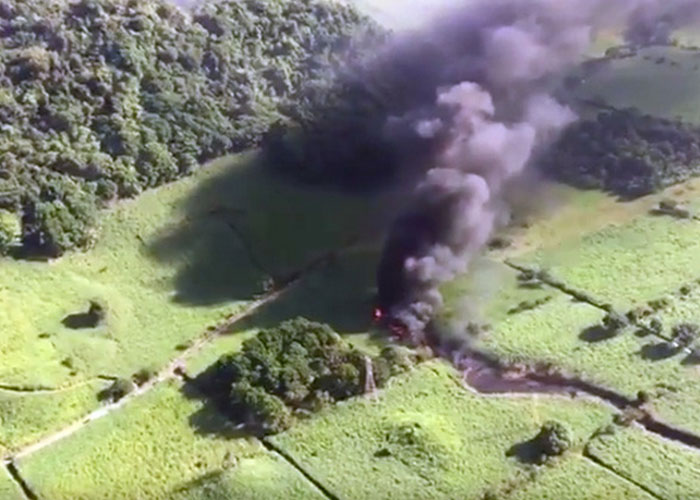 Imágenes en televisión mostraban una gran columna de humo negro y en el entorno algunos campos que se utilizan para la siembra de caña, constató el medio Infobae.