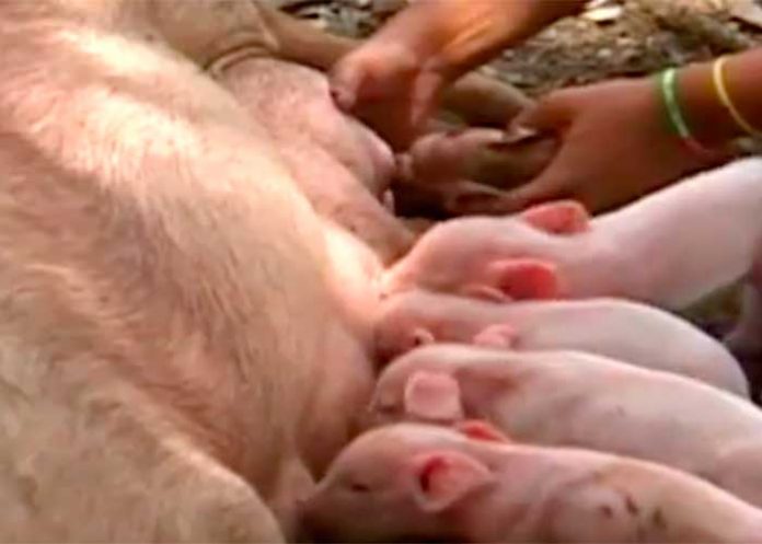 Una cerda dio a luz en un pueblo del oeste de Cuba una camada de diez lechones de los que uno, a diferencia de sus hermanos, es de color pardo y tiene un rostro con facciones que se asemejan mucho a las de un mono, publicaron hoy medios de la isla.