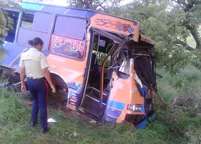El accidente ocurrió aproximadamente a la 1.00 hora local (5.30 GMT) en la autopista que conecta a las poblaciones del centro del país a la altura de la localidad de Trinchera, cuando el autobús se dirigía hacia Puerto Cabello, también en Carabobo, informó el director nacional de Protección Civil, Jorge Galindo.
