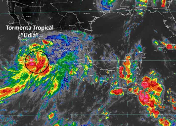Lidia, que se formó este miércoles en el Océano Pacífico, se ubica a 40 kilómetros al sur de Cabo San Lucas (Baja California Sur) y se desplaza hacia el nor-noroeste a 15 kilómetros por hora, de acuerdo con el último reporte emitido por el Servicio Meteorológico Nacional (SMN).