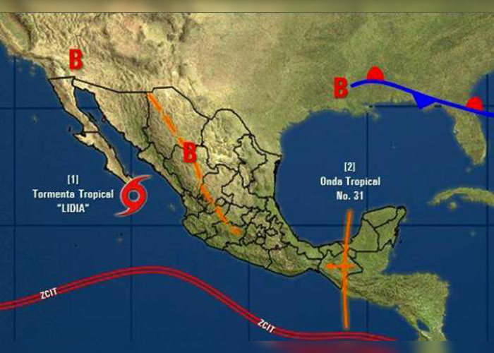 El día de ayer, jueves 31 de agosto, 'Lidia' tocó tierra en Baja California, en donde los pluviómetros registraron 300 milímetros de lluvia y por parte de la Comisión Nacional del Agua (Conagua) reportó precipitaciones superiores a los 250 mm y vientos de 100 kilómetros por hora.