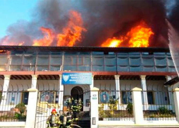 Un voraz incendio se registró la tarde de este domingo en una escuela ubicada en el sector de La Recoleta, casco colonial de Quito (Ecuador), informó el Cuerpo de Bomberos de esa localidad.