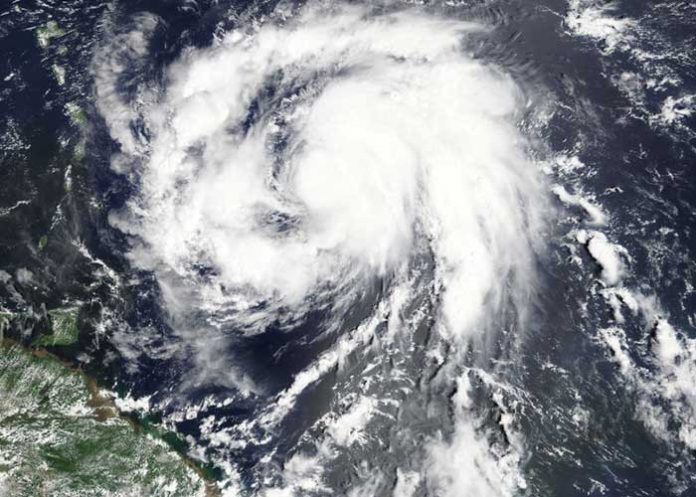 El vórtice se ubica a 25 kilómetros (15 millas) al este-sureste de Dominica y se mueve con dirección oeste-noroeste a 15 kph