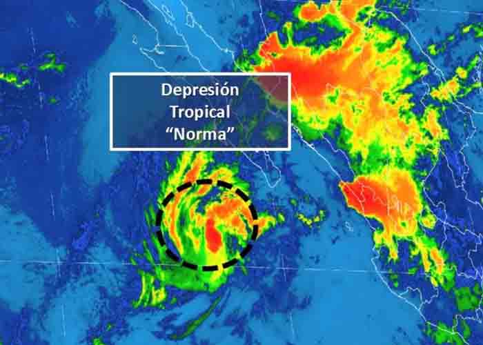 México, 19 sep (EFE).- Norma se degradó a depresión tropical mientras se aleja de las costas del Pacífico mexicano, ubicándose actualmente a 400 kilómetros de la península de Baja California, informó hoy el Servicio Meteorológico Nacional (SMN).