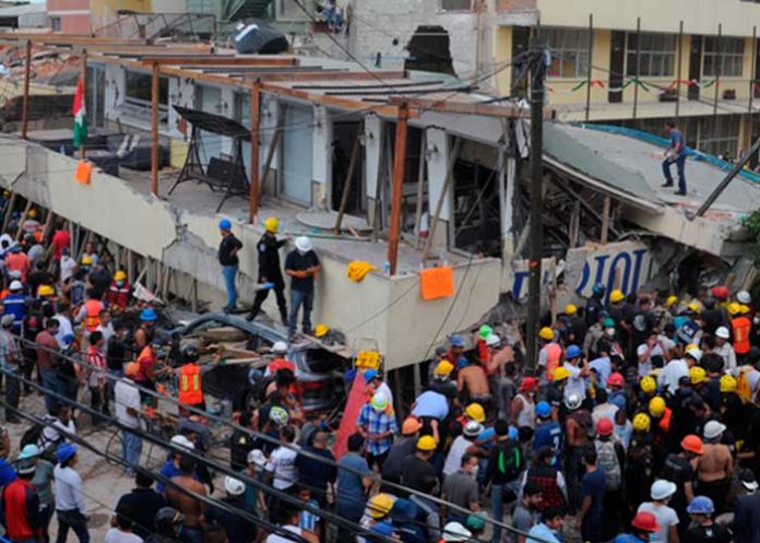 Las tareas de rescate se extendieron a lo largo de la noche en esta escuela del sur de la capital, uno de los cerca de 40 edificios que se derrumbaron en la capital a causa del terremoto de magnitud 7,1 en la escala de Richter.