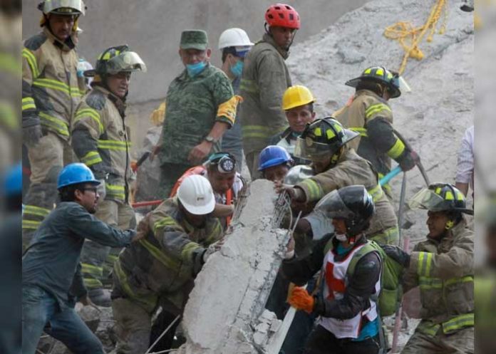 La televisión mexicana ha estado mostrando imágenes de equipos de rescate y voluntarios trabajando sobre los escombros de edificios que se han venido abajo en varias zonas de la capital mexicana.