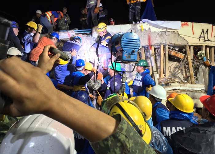 Destacó que los trabajos para rescatar a la menor, de quien dijo que se le calcula una edad de 12 años, así como a los demás sobrevivientes no se van a detener ya que las víctimas pasan en este momento su segunda noche bajo los escombros y el tiempo apremia para poder sacarlas con vida.