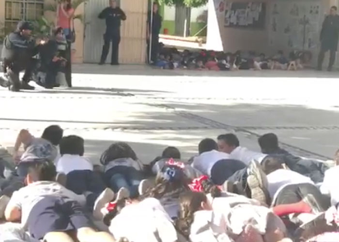 Al menos 500 estudiantes de la escuela primaria Capitán Rosendo Robles de La Paz, capital del estado mexicano de Baja California Sur, formaron parte de un simulacro en donde aprendieron a protegerse y fingir estar muertos en caso de un tiroteo.