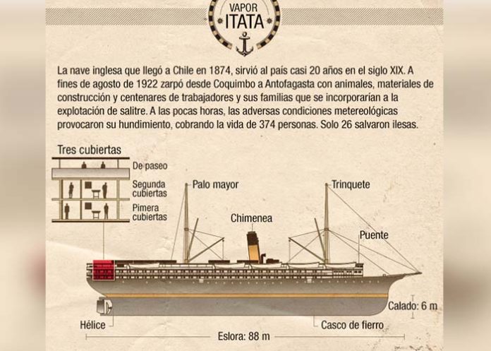 Santiago de Chile, 9 nov (EFE).- Un grupo de exploradores encontró el buque a vapor Itata, también conocido como el "Titanic chileno", que hace 95 años se hundió en una gran tormenta frente a las costas de la región norteña de Coquimbo, con más de 400 personas a bordo.