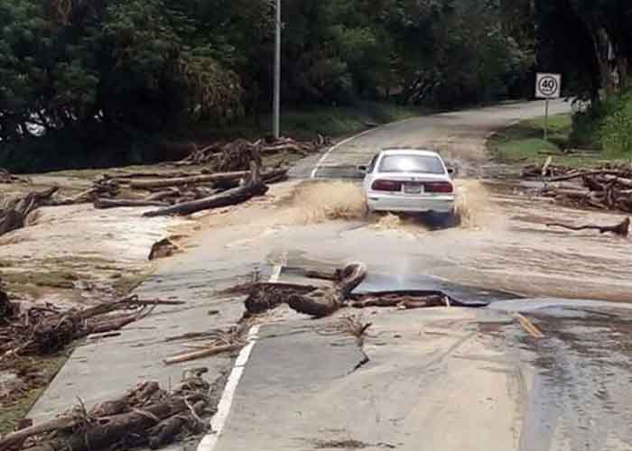 En tanto que, la carretera que conduce a la altura de la cancha deportiva de Alto San Vicente en Puerto Armuelles hacia el corregimiento de Los Limones del, distrito de Barú, se encontró que un brazo del río Guanábano se mantiene en desbordamiento sobre una línea de alcantarillas y hundimiento de 5 metros aproximado de la calzada a consecuencia de obstrucción por la gran cantidad de troncos y sedimento.
