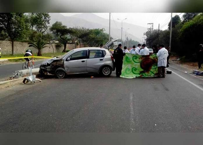 El vehículo donde estaba el cuerpo se empotró contra un poste de luz de la berma central frente al Country Club El Bosque.