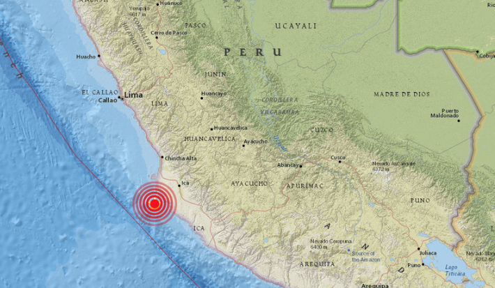 El epicentro del sismo se ubicó en el océano Pacífico a una profundidad de 10 kilómetros y a una distancia de 67 kilómetros de la península de Paracas.