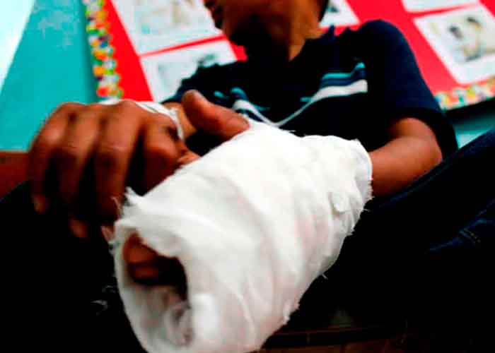 El menor tiene siete años y sufrió severas quemaduras en las manos y el brazo derecho, sin embargo, se encuentra fuera de peligro, según los galenos que lo atienden.