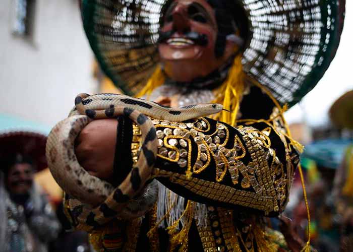 Este año fueron 18 serpientes las que se les entregaron a los danzantes, quienes las pasean por su cuerpo con confianza como signo de la creencia en la protección de su santo patrono.