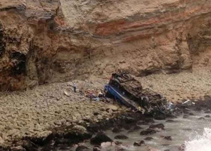 Fuentes de los rescatistas agregaron a Efe que el autobús cayó a un acantilado de unos 160 metros de profundidad, en una zona escarpada y rocosa que es batida por el océano Pacífico.