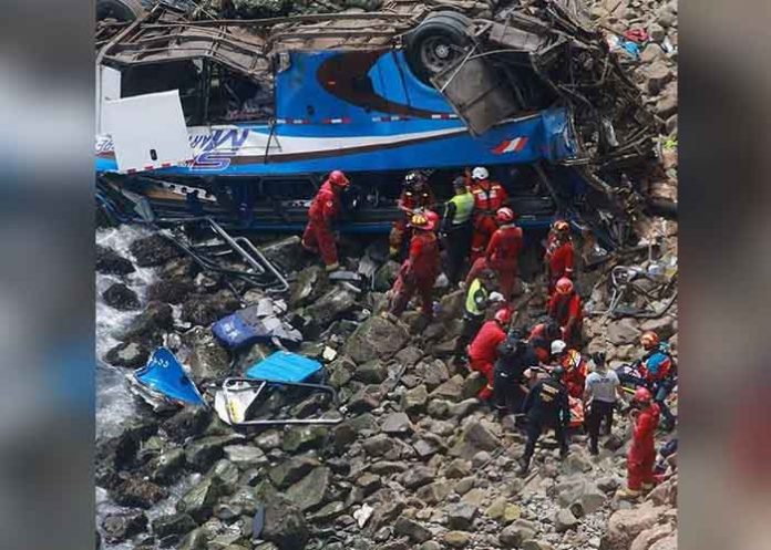 En tanto, el vicecomandante general del Cuerpo General de Bomberos Voluntarios del Perú, Larry Lynch, explicó a Efe que sus rescatistas han recuperado "32 (cadáveres) hasta el momento" y trabajan para poder liberar a otro número de supuestas víctimas de los restos del autobús, que viajaba con 57 pasajeros.