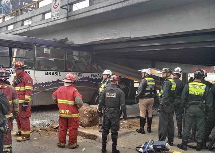 La causa del accidente de tránsito sería la excesiva velocidad con la que el conductor intentó cruzar debajo del puente, el cual tenía un aviso de que solo podían pasar vehículos livianos.