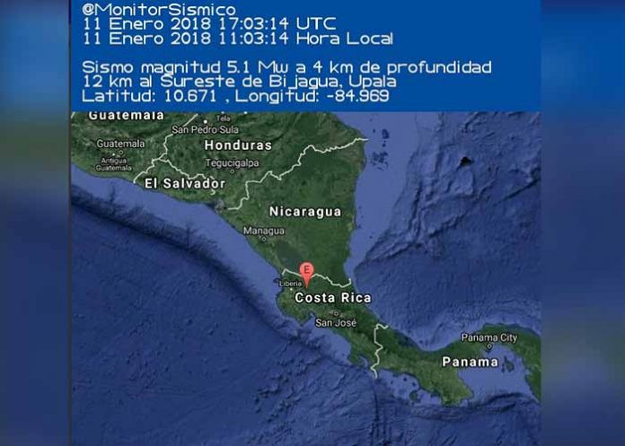 El movimiento telúrico se localizó 13 kilómetros al este de Bijagua, en el cantón alajuelense.