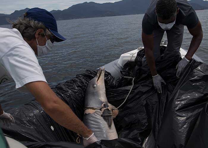 Otros 40 delfines costeros fueron encontrados muertos en una isla cercana de nombre Ilha Grande.