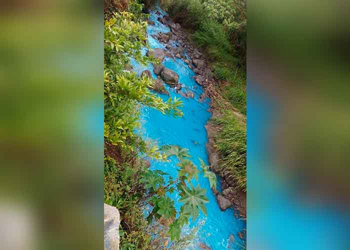 Vía WhatsApp, el legislador publicó tres fotos en las cuales, con gran sarcasmo, pregunta si es que en Quircot nació un nuevo río Celeste, al tiempo que de inmediato advierte que todo se puede tratar de una contaminación.