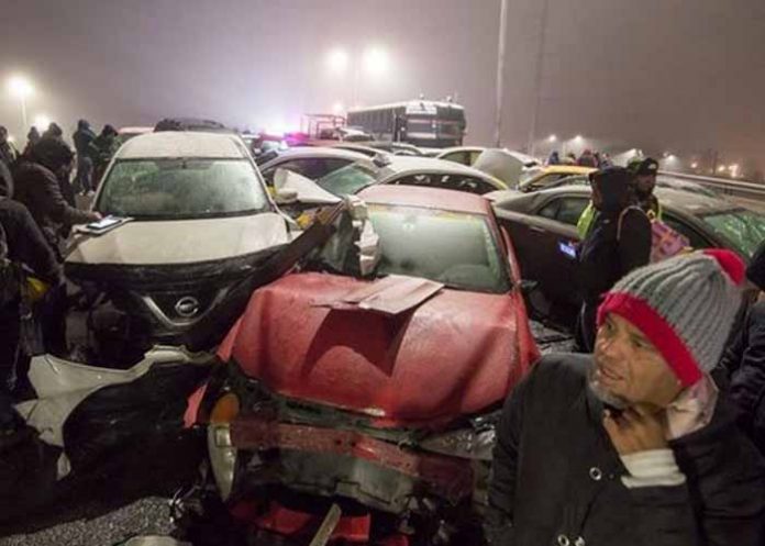 El hecho, que dejó cinco heridos leves, tuvo lugar alrededor de las 21.00 hora local del martes (03.00 GMT del miércoles) en un puente, luego de que un automóvil se desviara tratando de esquivar una camioneta, lo que provocó que más automovilistas derraparan y chocaran entre sí.